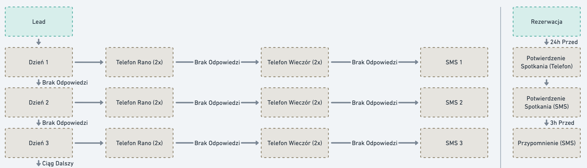 “Odhaczenie” wszystkich poprzednich kroków zapewni nam “leady”, ale to że ktoś zostawił informacje kontaktowe samo w sobie nic nie znaczy, to że ktoś powiedział, że “będzie” też nic nie znaczy, liczy się tylko to czy i kto finalnie przyjdzie. Dlatego, żeby zmaksymalizować zwrot z inwestycji, musimy zmaksymalizować procent osób, który faktycznie przyjdzie na konsultację. Robimy to poprzez procesy “Follow Up”, czyli sekwencje dzwonienia, email i SMS, aby przypomnieć i dać naszemu avatarowi dodatkowe wartościowe informacje (Tak, ta część też leży po mojej stronie).
